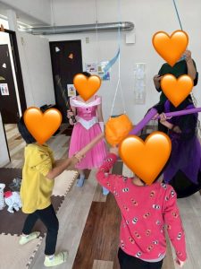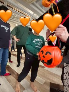 ハロウィンならではのピニャータ割りに挑戦!みんなで力を合わせて割ることができ、とても楽しい時間になりました。
