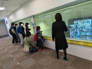 お姉さんの説明を聞きながら、たくさんのモニターにくぎ付けです。