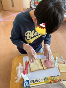 ジャムロールを担当した子は、クルクルと巻くのが難しく、「上手く巻けな~い」と言いながらも頑張って作ってくれていました。