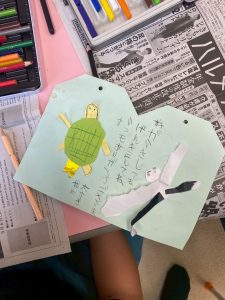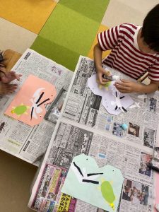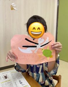 「かわいい亀にしよーっと!」とハートの模様にお絵描きする子も💗