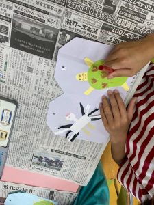 細かいパーツを切ったりちぎったりして、バランスを考えながら貼っていきます。